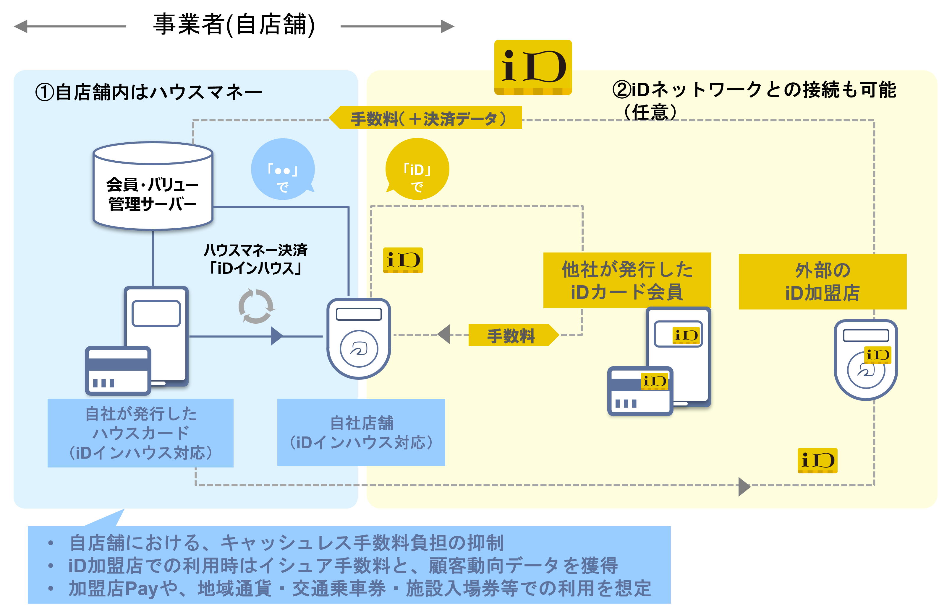 「iD」加盟店での利用による決済手数料収入獲得機会は、ハウスマネーの運営コスト軽減にもつながり、ハウスマネーサービスの持続的な提供と自店舗のキャッシュレス化の促進を可能にします。