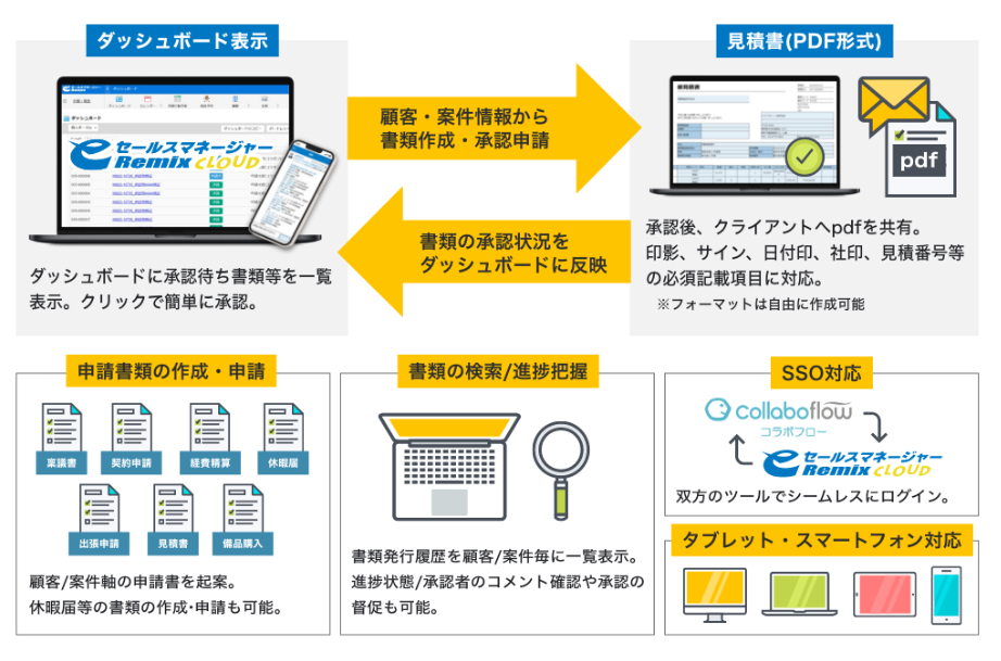 本サービスはeセールスマネージャーRemixCloud並びにコラボフローの利用契約と、連携機能のご契約が必要となります。