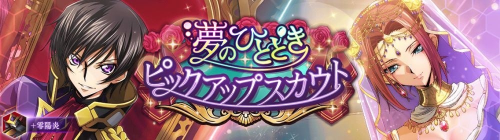 新パイロット、★4ルルーシュ[麗しき反逆者]、★4カレン[異国のドレスで着飾って]が登場! ピックアップで出現率も上昇しています!
