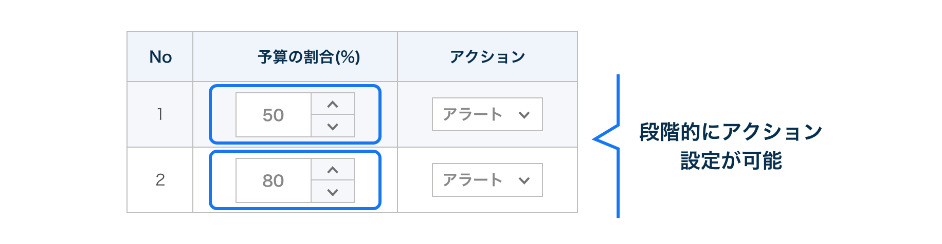 設定した上限に対して段階的にアラートメールの配信が可能になり、利用管理がより細かく設定できます。また、送信文面も管理者様ご自身での編集が可能になりました。