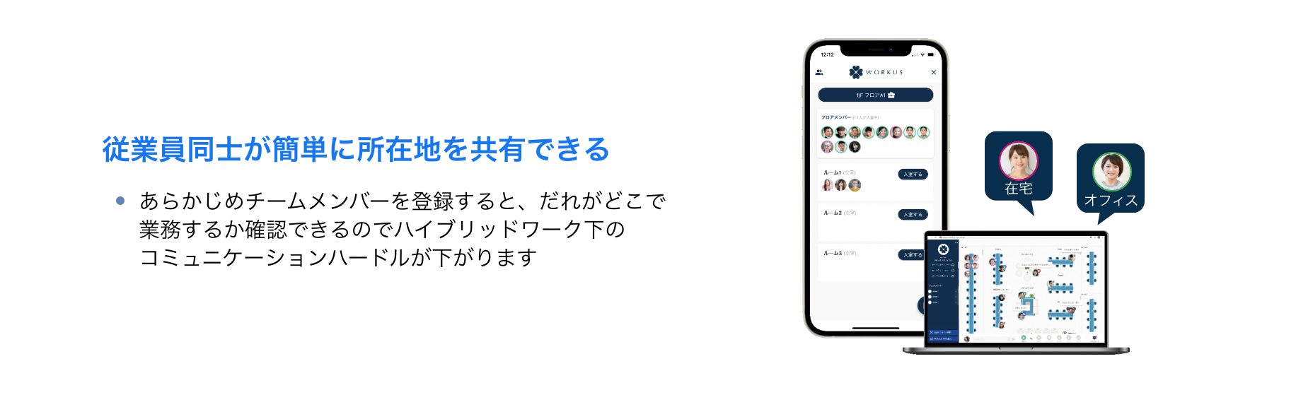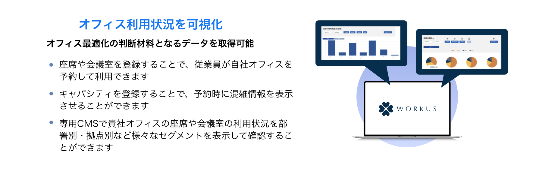 事業内容:「WORKUS」アプリ提供、ファシリティマネジメント、IT・スマートオフィス導入支援、オフィス賃貸仲介・コンサルティング、WeWork メンバーシップ斡旋・導入支援、オフィスデザイン・設計・プロジェクトマネジメント