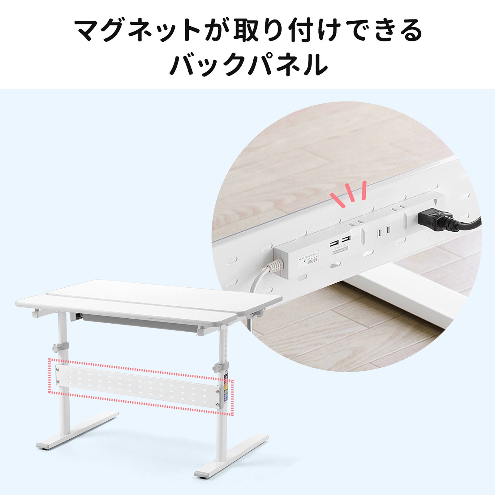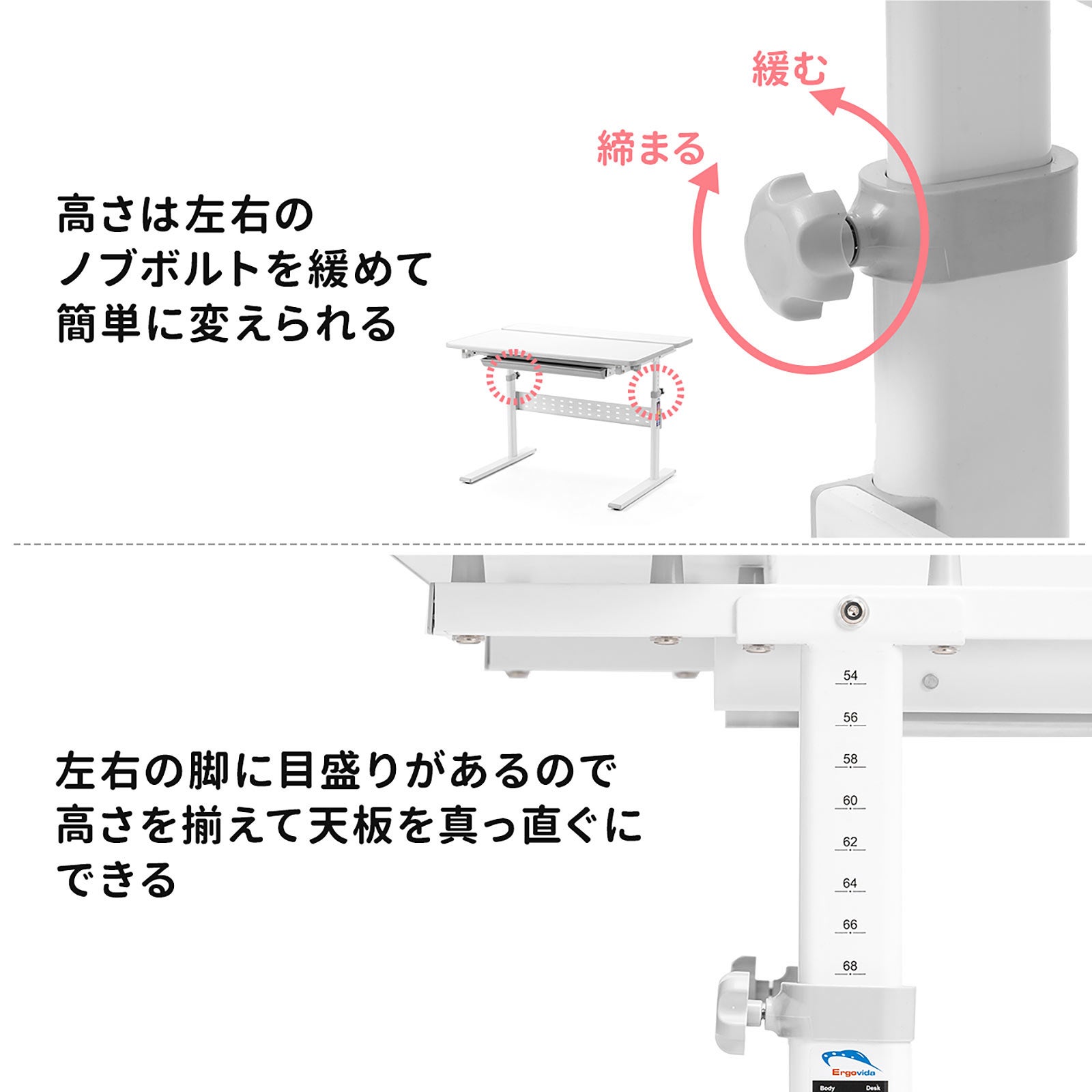本製品は、天板の高さを54cm~76cmまで調整できる子供向けデスクです。成長に合わせて天板の高さを変えられるため、長く使用することができます。