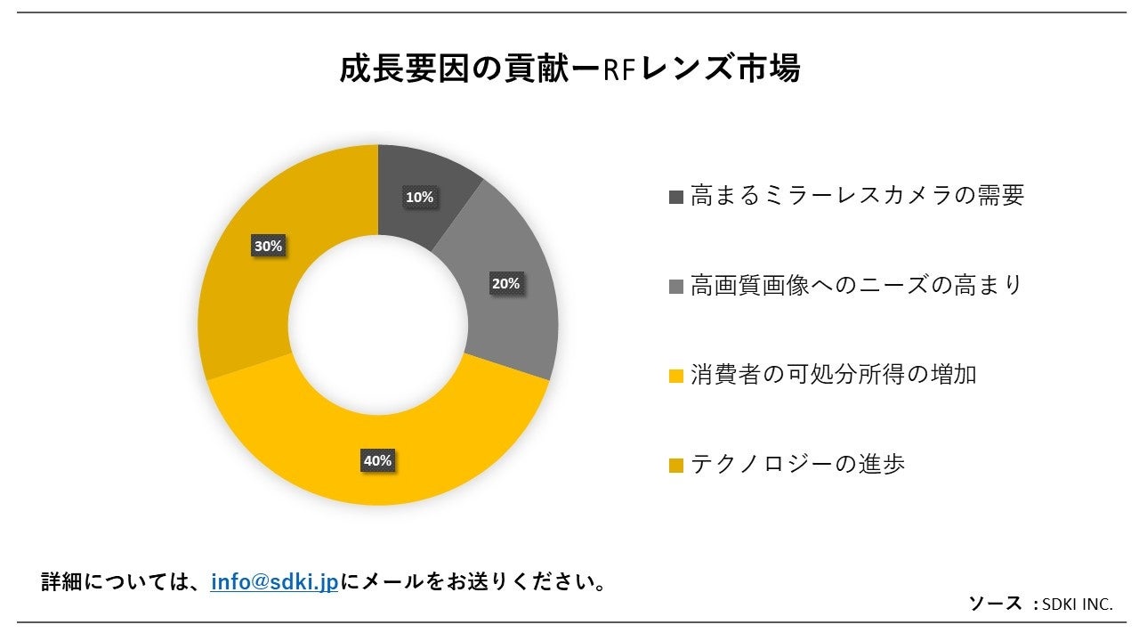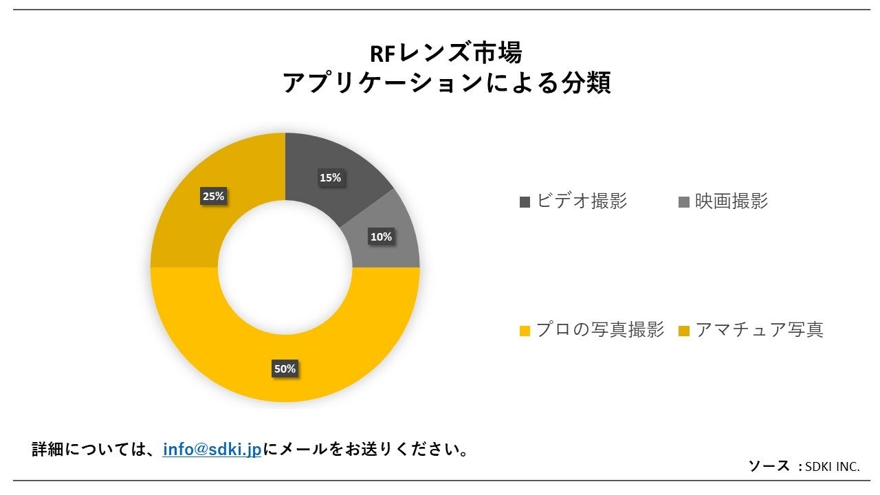 アジア太平洋地域の市場は、2035 年末までに最大の市場シェアを占めると予想されています。APAC 地域には写真愛好家、趣味人、専門家がたくさんいます。結婚式、イベント、商業写真プロジェクトの増加により高品質レンズの需要が高まり、この地域のRFレンズ市場の成長を推進しています。高度なカメラ技術に対する需要の増加、可処分所得の増加、プロの写真家の数の増加は、市場の成長を促進する要因の一部です。報告書によると、アジア太平洋地域の可処分所得は2021年に5.6%増加すると予想されており、高級カメラレンズなどの贅沢品への個人支出が増加する可能性が高いです。日本にはキヤノン、ニコン、シグマなどの大手カメラメーカーやレンズメーカーが複数あり、国内のRFレンズ市場の成長を牽引しています。この成長の主な原動力の 1 つは、RF レンズと互換性のあるミラーレス カメラの採用の増加です。BCNランキングのレポートによると、2020年の日本のカメラ市場全体のシェアはミラーレスカメラが60%以上を占め、ソニーとキヤノンが市場トップ2となりました。