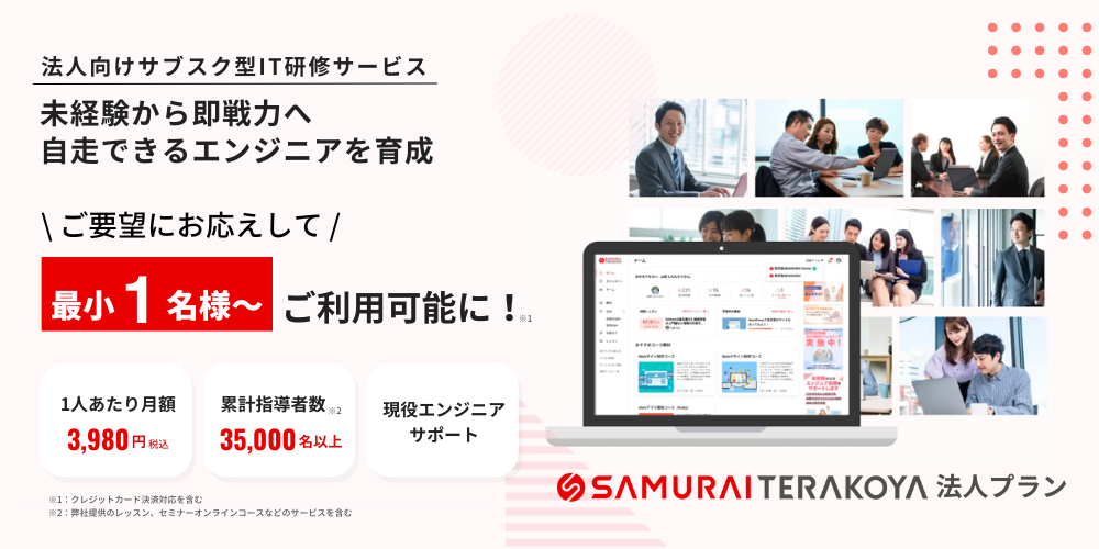 ◎ サービス資料ダウンロード:https://lp.sejuku.net/terakoya/biz/#form_contact