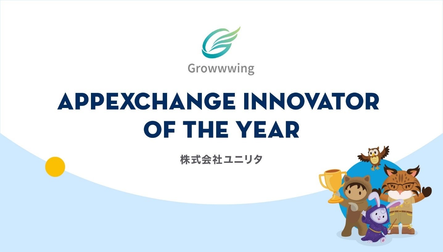 株式会社ユニリタ(本社:東京都港区、代表取締役 社長執行役員:北野 裕行、東証スタンダード市場:3800、以下 ユニリタ)は、Salesforce Japan Partner Award 2023におけるInnovation部門 AppExchange Innovator of the Yearを受賞しました。受賞においては、「ユニリタが提供するカスタマーサクセスプラットフォーム「Growwwing(グローウィング)」と、Salesforce Sales Cloud、Tableauを連携されている当事例は、Customer 360の価値を提供し、商談から成約、カスタマーサクセスまでの一連のプロセスを、データを活用してお客様の成功に貢献されています。企業成長に繋がる導入効果にもつながっている」点が評価されました。