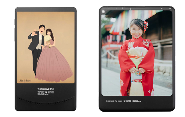 新郎新婦からご両家への贈答品、ご家族で使うタブレットに思い出の写真が印刷・デジタル写真集の様に