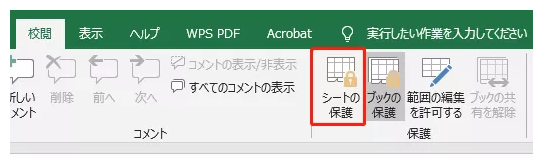 次は「シートの保護」ボタンからシート保護をかけることも可能です。