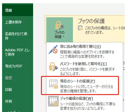 最初に、Excelシート保護の設定方法から見ていきましょう。Excelシート保護をかける方法は3種類あります。