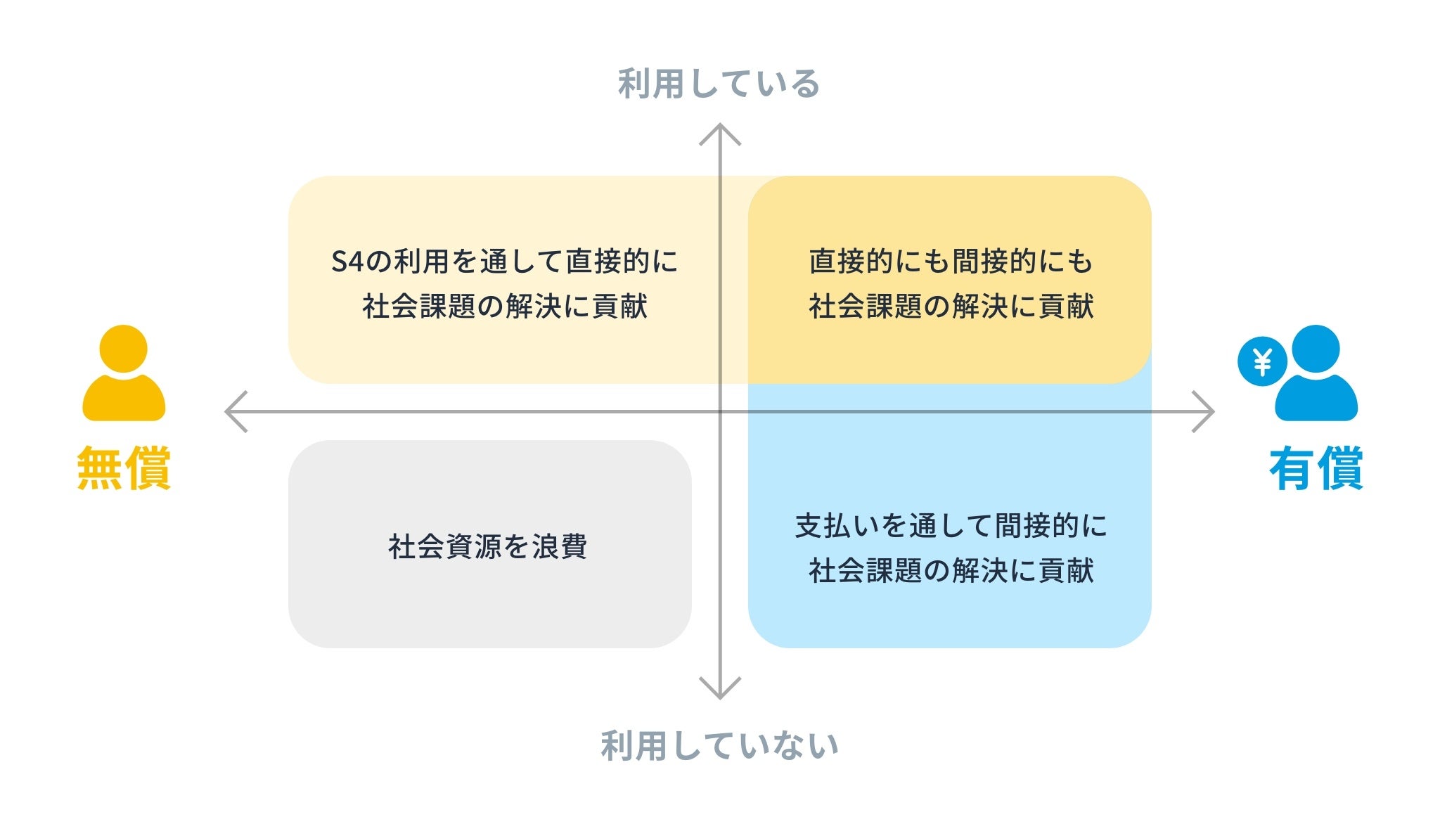 しかし、S4を利用しない無償ユーザーは、直接的にも間接的にもセキュリティの社会課題解決に貢献していないだけでなく、社会資源であるS4を浪費している状態にあると言えます。