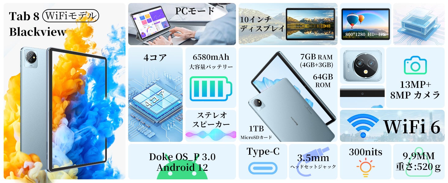 ■ Blackview Tab8 WiFi [7GB (4GB+3GB拡張) RAM+64GB ROM] のセール情報