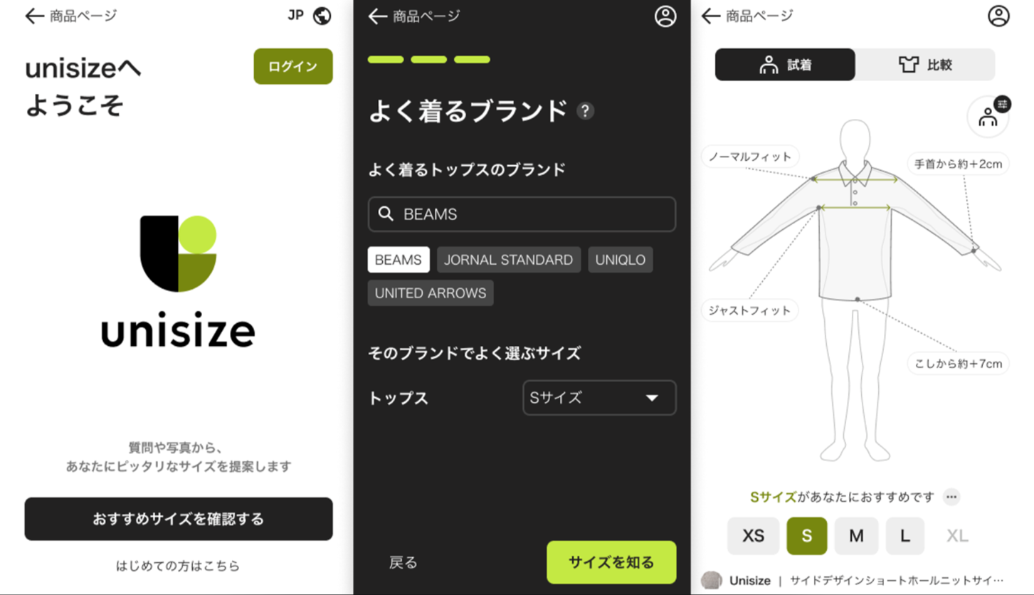unisize(https://cl.unisize.makip.co.jp/)はネットで洋服やバッグなどを買うときに、より身体に合ったサイズを推奨するサイズレコメンドエンジンです。国内外の洋服ブランドを対象とした多量な洋服・グッズのサイズデータを有し、入力されたユーザーの身体情報、特徴を元に最適なサイズを推定する独自のアルゴリズムでレコメンドを行っております。(特許取得済み)