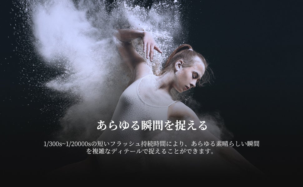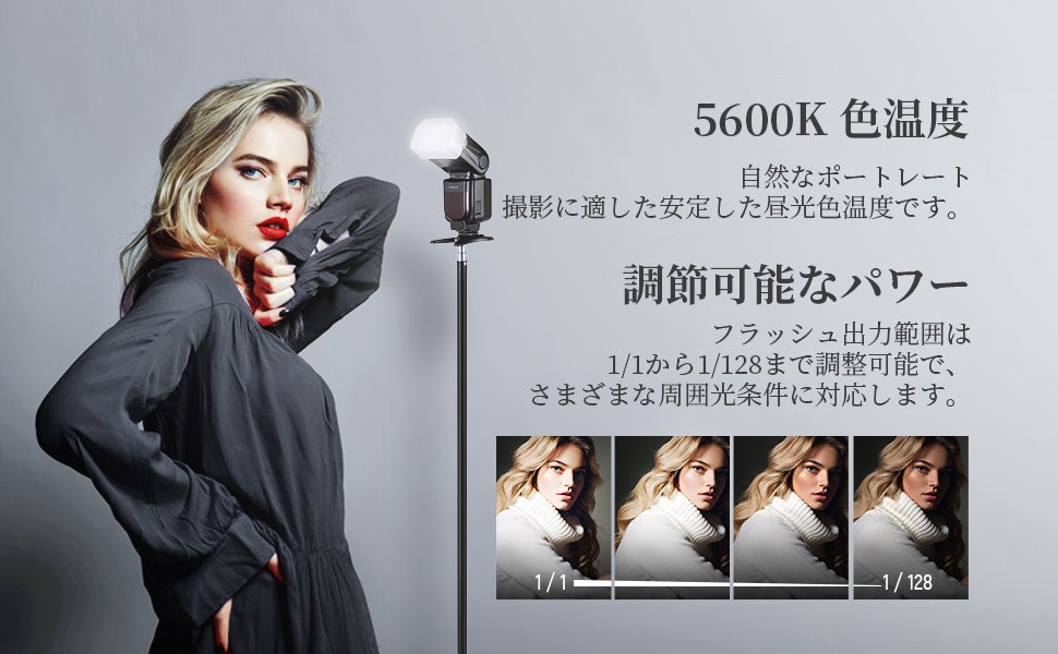 ・フラッシュ出力は1/1から1/128まで調整可能です。3.5sの短いリサイクル時間と1/300 s~1/20000sのフラッシュ持続時間対応