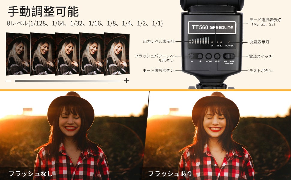 【調整可能なフラッシュ出力】