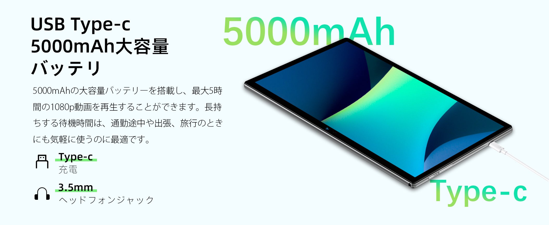5000mAhバッテリー容量