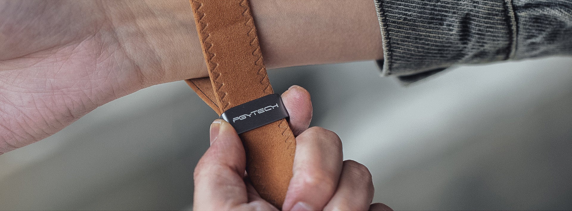 PGYTECH カメラリストストラップは多様なカメラ対応した、リスト(手首用)カメラストラップです。肌と触れ合う部分はマイクロファイバー素材で心地よく、内側にはダイニーマ素材を採用し、非常に高耐久に仕上がっています。こだわりのアジャスターは片手で締め具合の調整が可能で、カメラ落下時にもしっかり支えて安心してお使いいただけます。