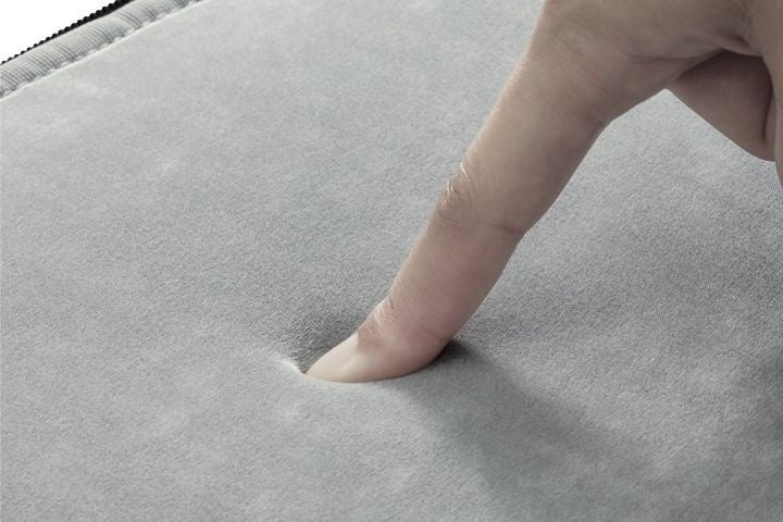 天面、底面、側面それぞれにクッション材を搭載した、360度全面保護仕様のインナーケースです。ケース内部には、収納機器の周囲を360度保護する、クッション内蔵のコーナーガードを備えています。本体底面には、軽量化と衝撃吸収を両立する低反発ウェーブカットウレタンフォームを内蔵しています。本体天面には、面の衝撃をしっかり緩和する、厚手の低反発フラットウレタンフォームを内蔵しています。シーンを選ばず使える、シンプルなデザインに仕上げています。
