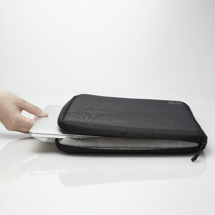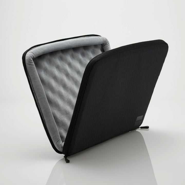 ケース内部には、収納機器の周囲を360度保護する、クッション内蔵のコーナーガードを備えており、出し入れ時にパソコン本体を傷つけにくい起毛素材を採用しています。ケースの開閉や収納物の出し入れがしやすい、フルオープンタイプのダブルファスナー仕様で14.0インチまでと15.6インチまでの2サイズをご用意しています。