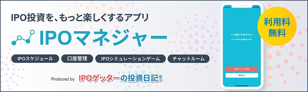 IPO投資をするための便利な機能と、IPOの無料体験ゲームができるスマホアプリです。