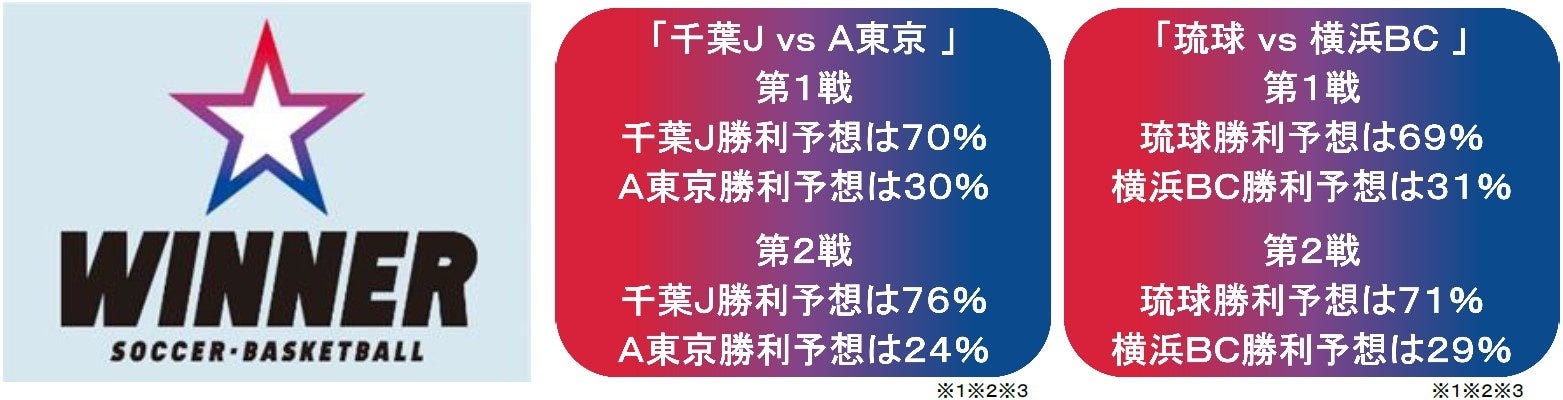 ※2 「WINNERバスケ1試合予想」のうち、千葉ジェッツおよび琉球ゴールデンキングスが勝利する投票内容(No.1~No.8)に投票された割合の合計です。なお、投票内容は延長も含んだ試合結果です。