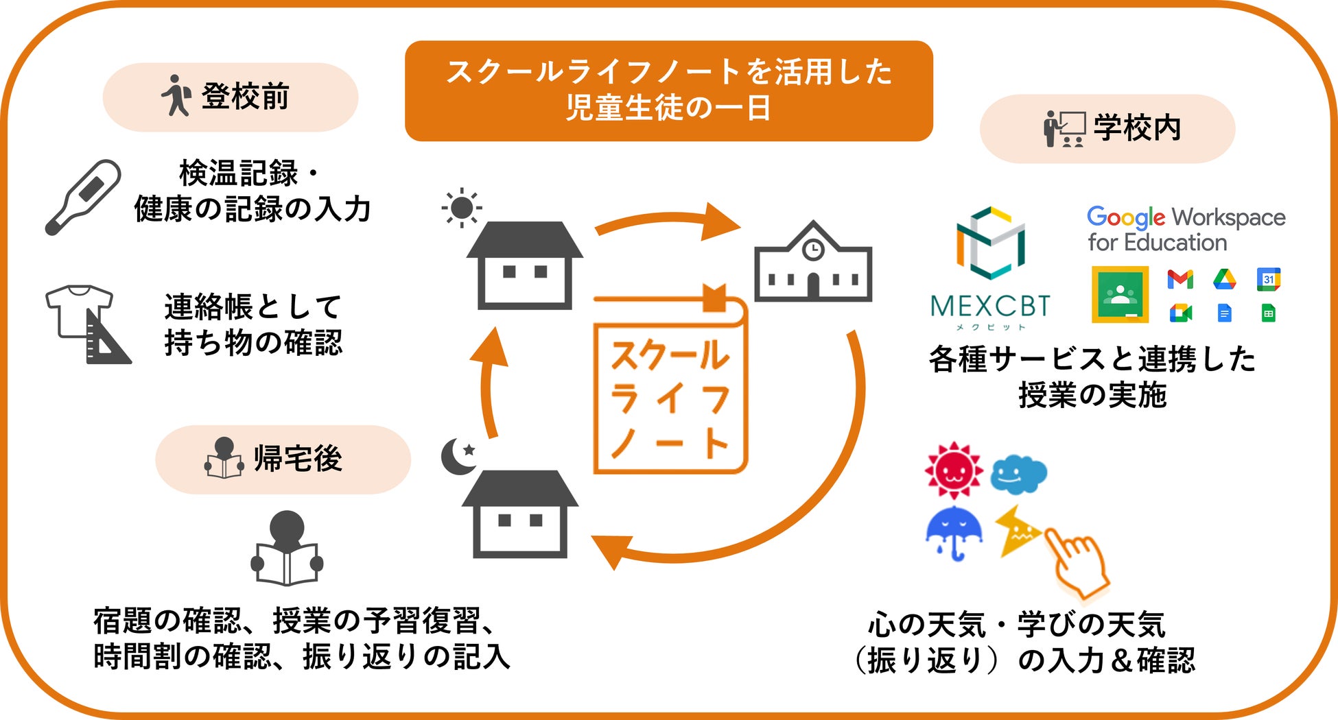 (*3)「心の天気」は、児童生徒の日々の気持ちを天気に例えて可視化する機能。「学びの天気」は、授業ごとに児童生徒が自らの学びを天気と文章で振り返る機能。