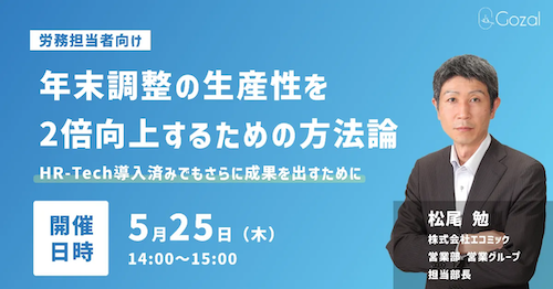 そこで今回は、多くの企業の年末調整業務を支援されている株式会社エコミックの営業部 担当部長の松尾勉さまを講師でお招きし、年末調整の生産性を飛躍的に高めるための方法論を徹底的に解説していただきます。