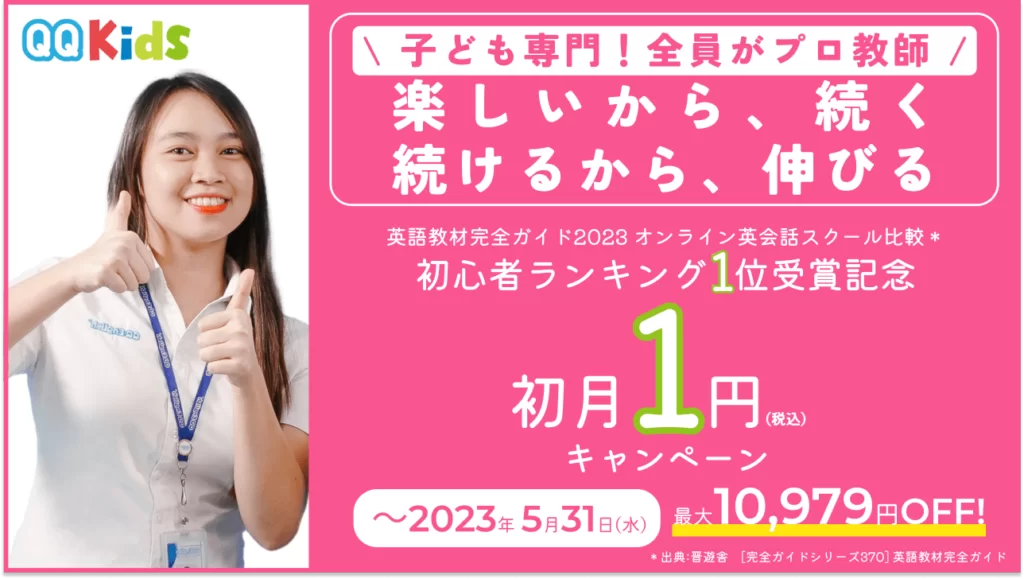 【オンライン英会話部門 2023年版 第1位受賞記念!】新規入会で全プラン初月1円キャンペーンを開催!