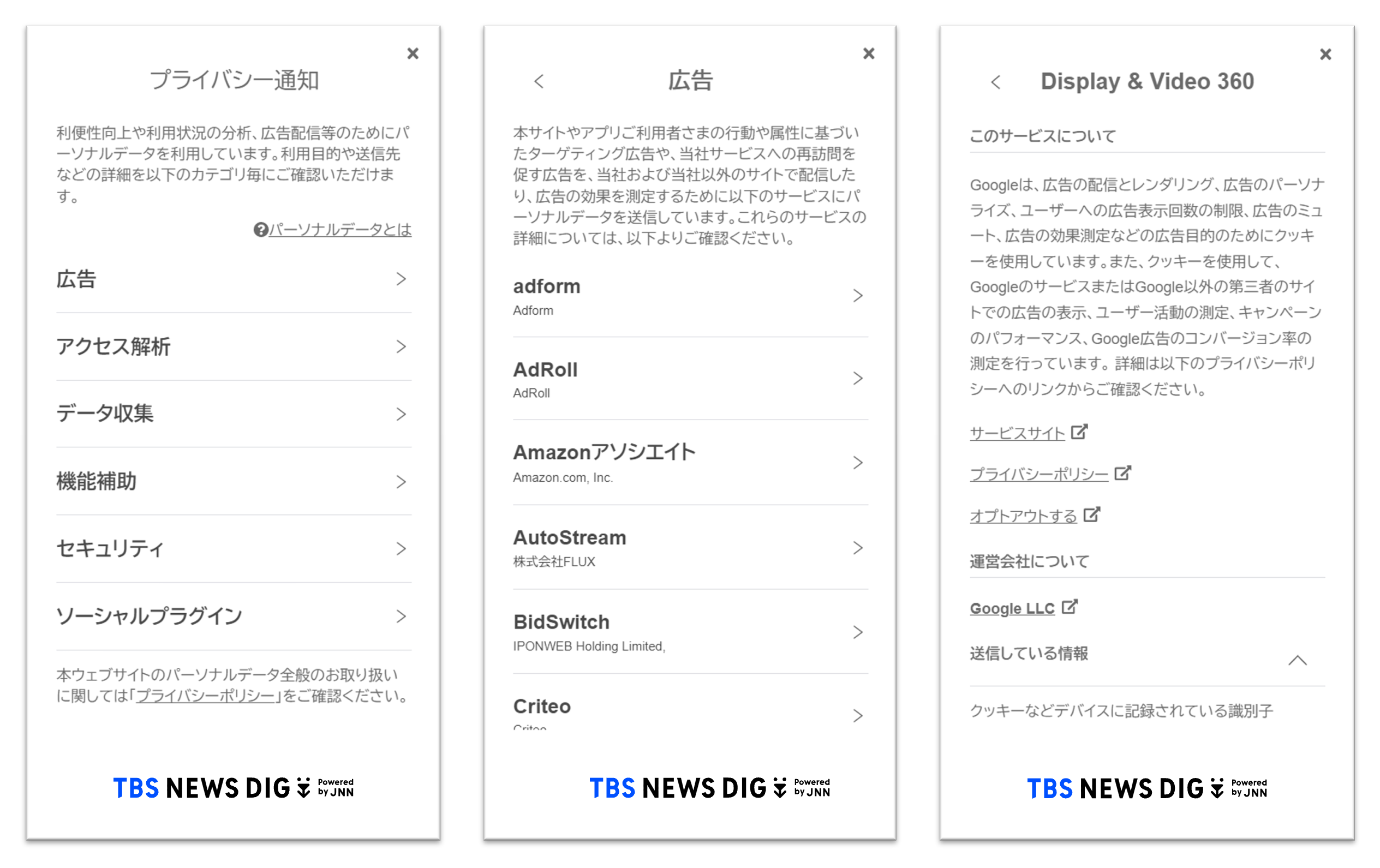 「私たちは、TBSをキー局とするJNN28社のニュースを掲載するWebサイト及びアプリを運営しています。Web事業に試行錯誤はつきもので、広告タグや計測タグの設定変更を頻繁に行います。webtruは簡単な実装で、外部ドメインへの通信内容と目的・オプトアウトページのリストを自動生成してくれます。運用を続けて行く中で、抜け漏れなく通信を管理することは簡単ではないので、便利なツールであると感じています。」
