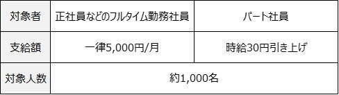 従業員が安心して子育てができるよう生活支援策として支給していた出産祝金を従来の2万円から増額いたします。第1子出産時は5万円、第2子出産時は10万円、第3子以降は一律100万円を支給いたします。また、既存の従業員において、すでに3人以上子どもがいる社員に対しては10万円を一時金として支援いたします。