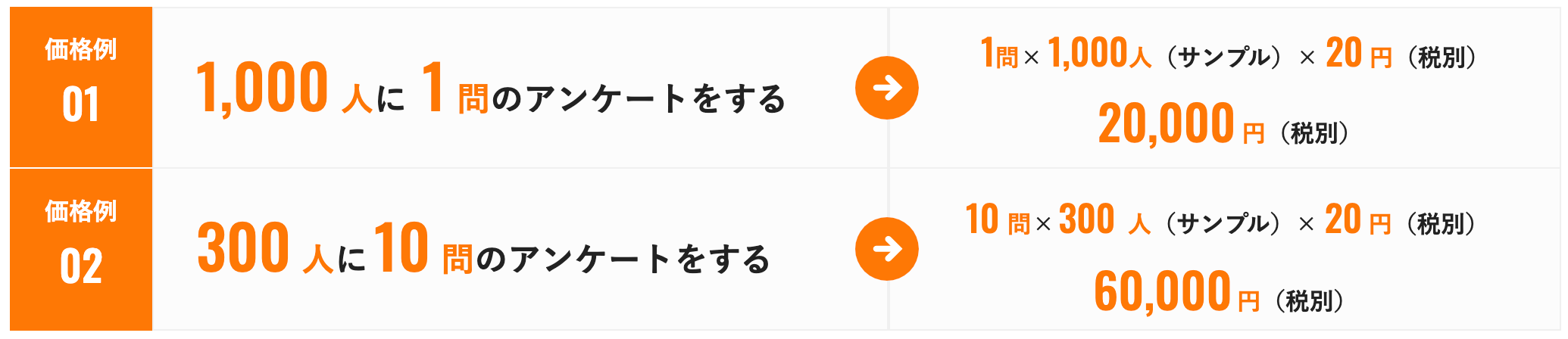 ※「グローバルモニターアンケート」では使用するアンケート作成機能によって金額が「1問×1s×30円(税別)」になります。