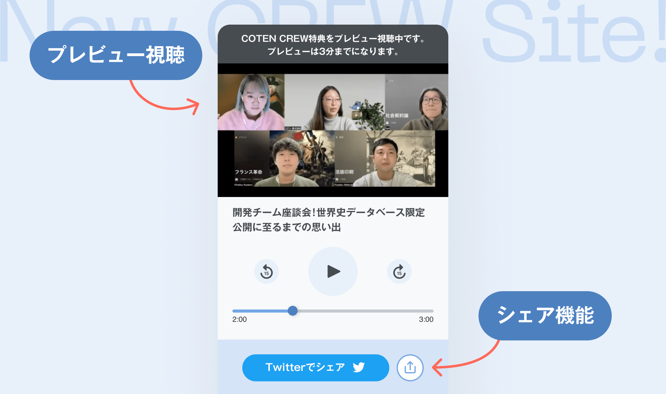 特典音源・動画をURLでシェアできるようになり、COTEN CREWでない人も数分間のお試し視聴が可能になりました。
