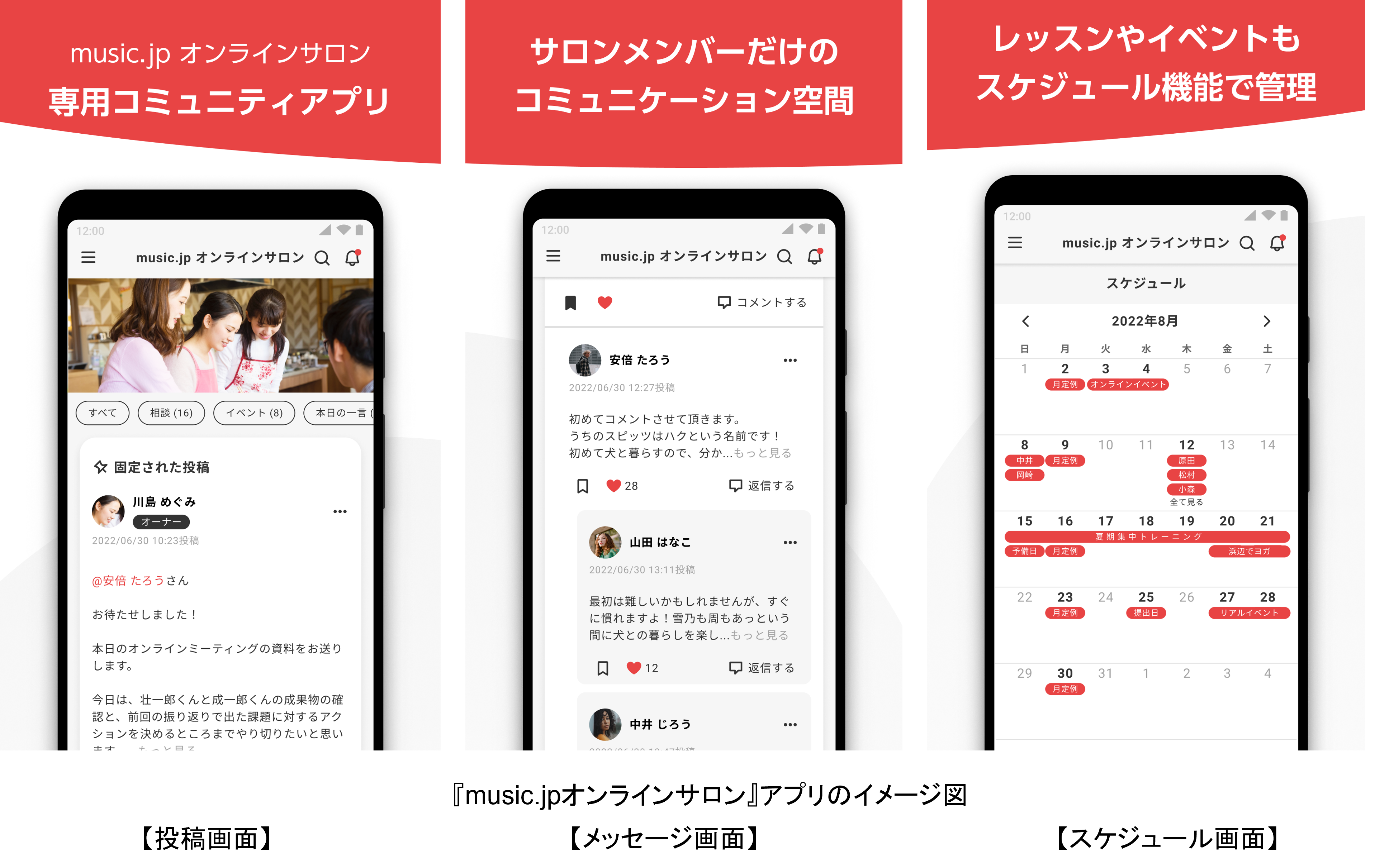 ◆『music.jpオンラインサロン』専用コミュニティアプリで、より安全で快適な環境でのサロン運営をサポー