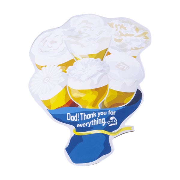 ビールをモチーフにした花束メッセージカードを添えて、お父さんにほろ酔いで楽しむ一日をプレゼントしてみてはいかがでしょうか。