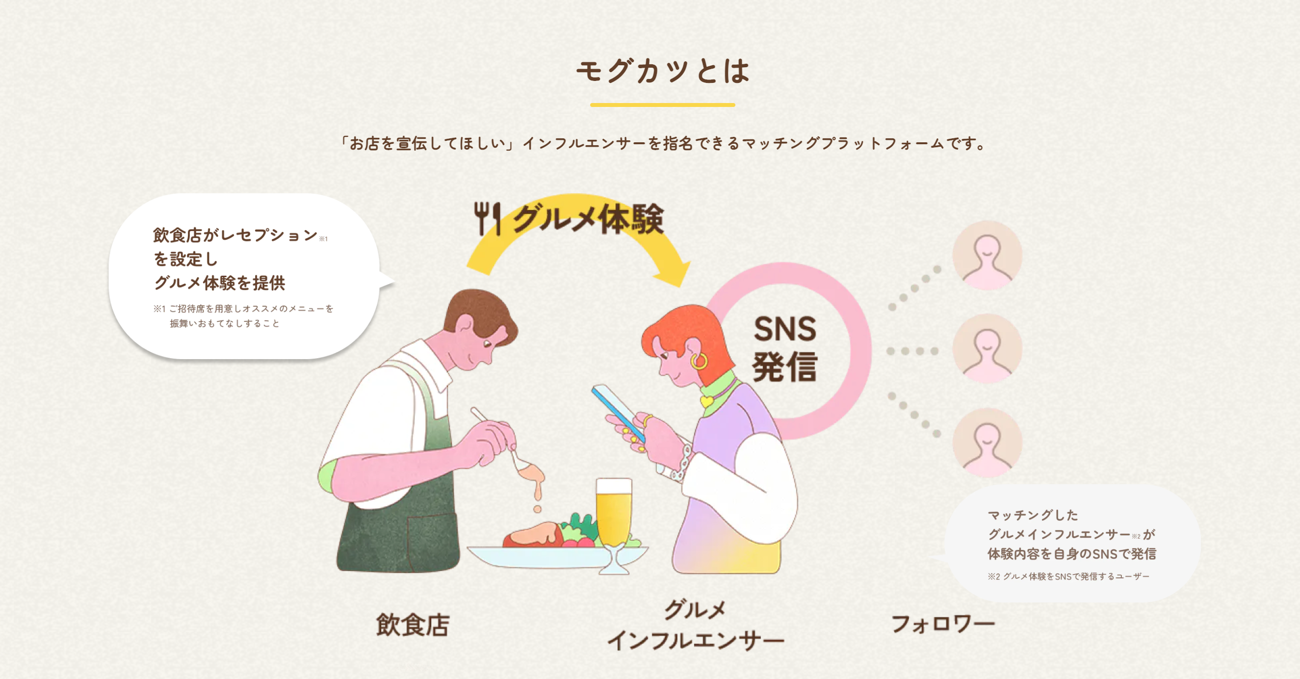 グルメインフルエンサーのみなさま向けLP https://service.mogukatsu.com