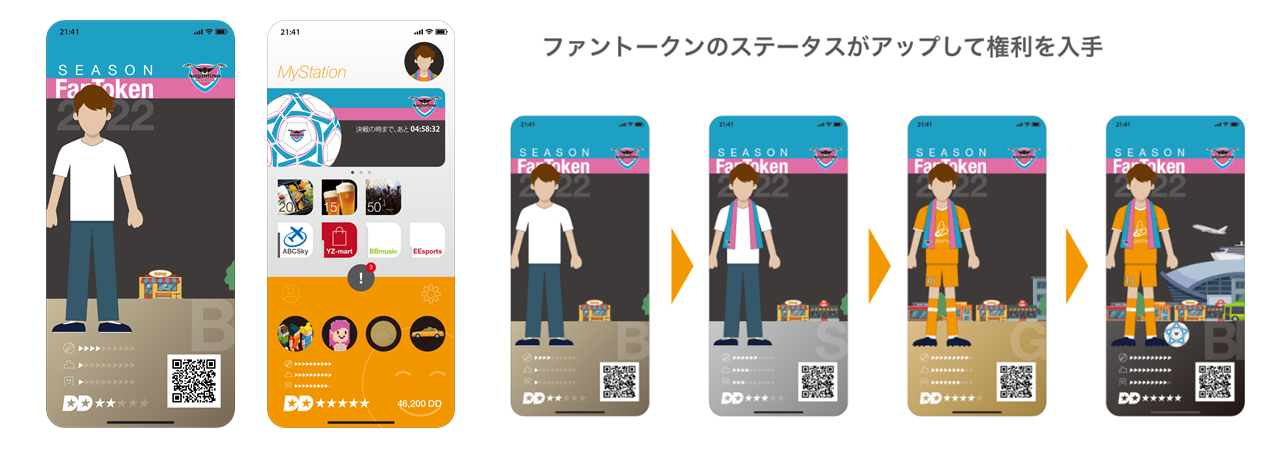 このNFTはファンの皆さまそれぞれが応援していただけばいただくほど、お持ちのファントークンのステータスがアップしていくダイナミックファントークンという技術を使用しています。