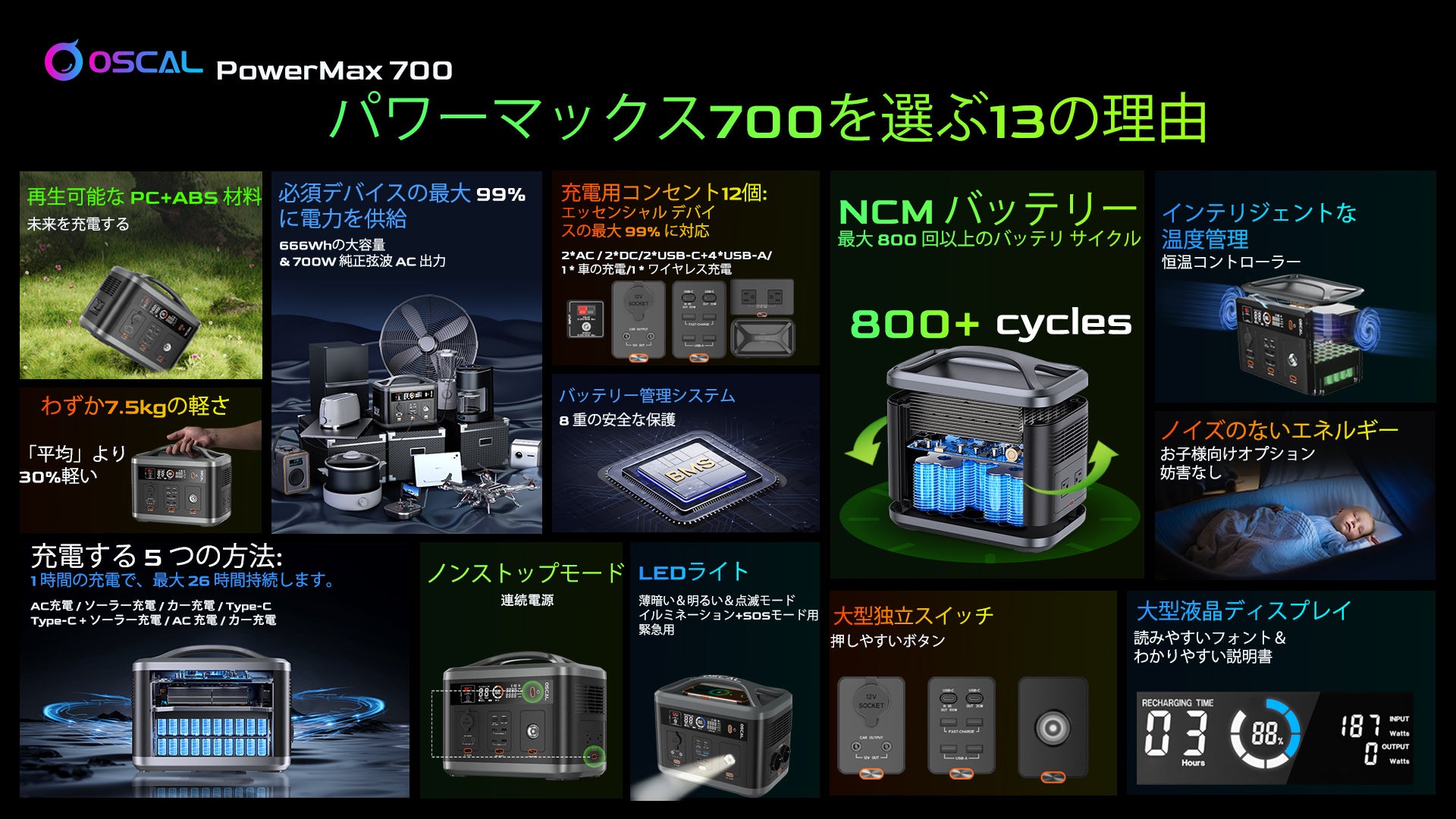 なお、同時期には同ブランドの高性能ポータブル電源「OSCAL PowerMax700」もタイムセール価格でお得に購入可能となっています。