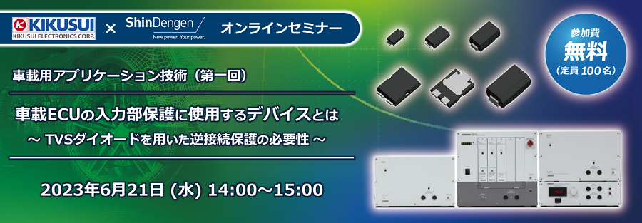 本セミナーでは、ECUの入力部保護に使用するデバイス(TVSダイオード)の必要性や保護の方法、保護用デバイスの種類やメリットについて説明します。また、ノイズ源として、国際規格であるISO7637-2規格や ISO16750-2規格の過渡サージ・電源電圧変動に対して、デバイスの使用例や各規格波形に関する発生原理、規格の最新動向についても詳述します。