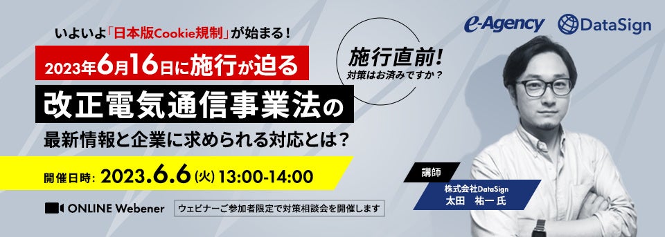 “おもてなしを科学する”株式会社イー・エージェンシー(本社:東京都千代田区、代表取締役:甲斐真樹)は、「データプライバシー対策」をテーマに、改正電気通信事業法について施行直前の最新情報と各企業が対応するべき具体的なポイントを解説する無料ウェビナーを6月6日(火)に開催いたします。