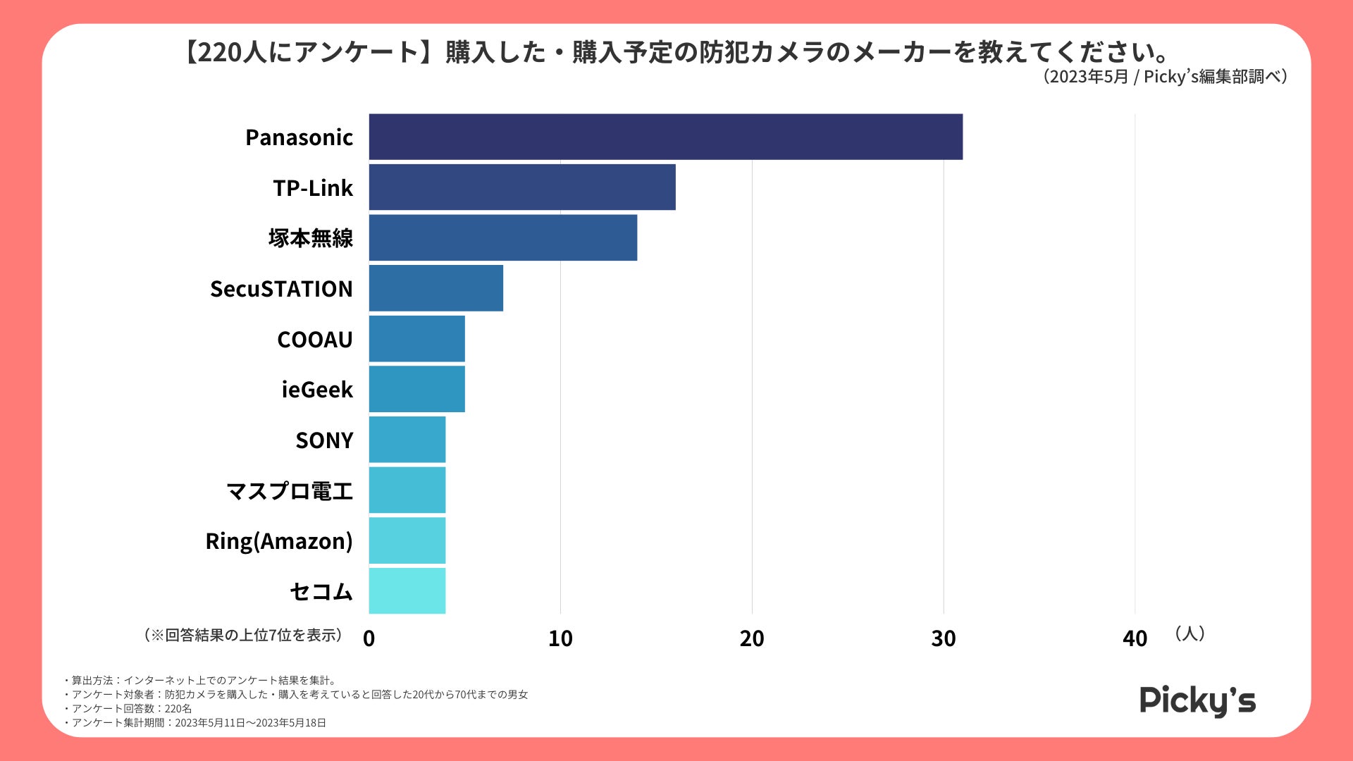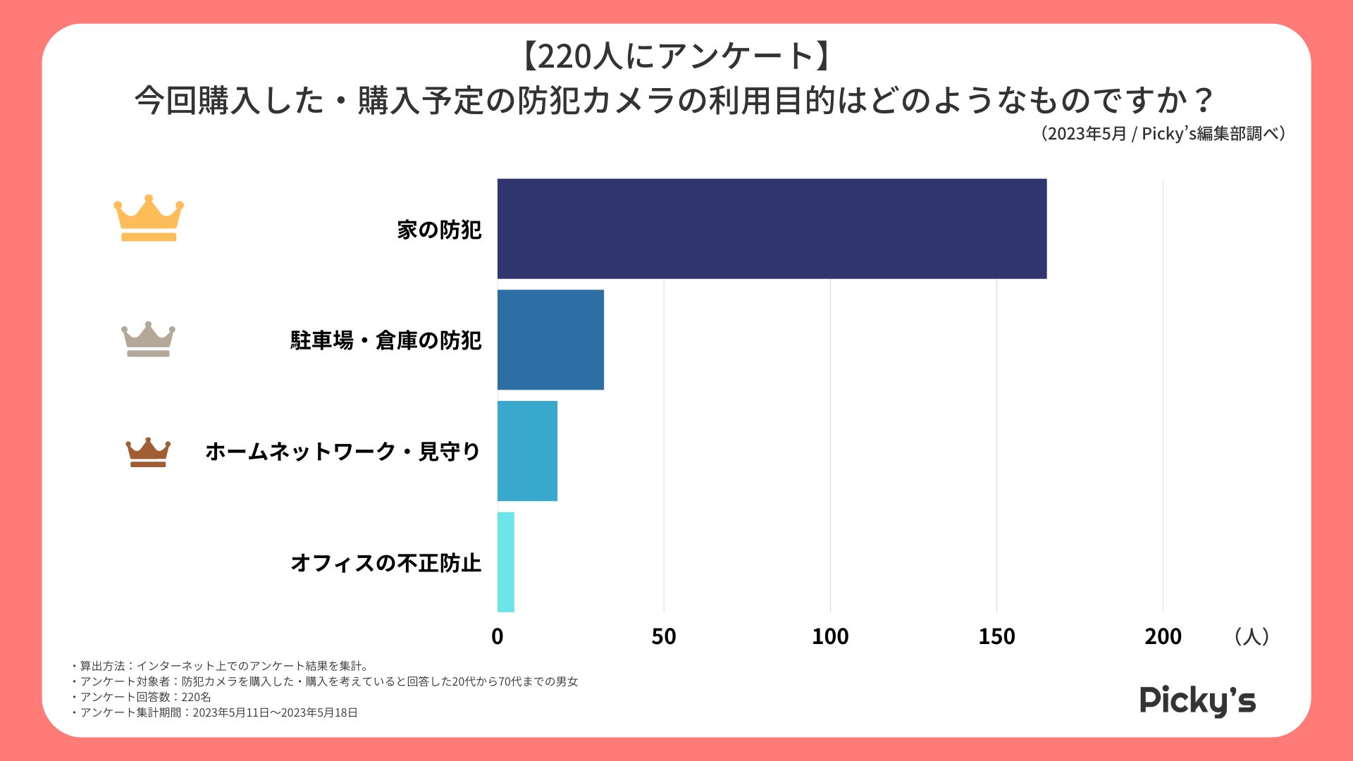 「Picky’s」は、インターネットショッピングにおいて、購入前に試せない・選ぶべきものがわからないという課題の解決を目標に、あらゆる商品のおすすめランキングや検証レビューを紹介するサイトです。このたびPicky’s(https://rentry.jp/note/)では、防犯カメラについてインターネット上でアンケート調査を行いましたので発表いたします。