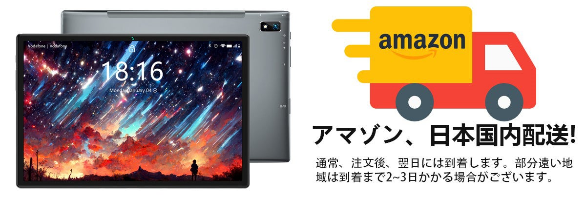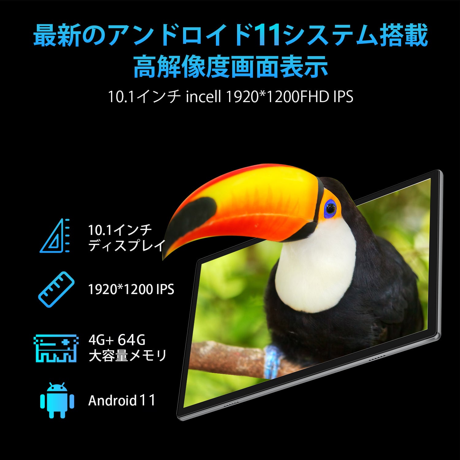 【1080P 10インチ大画面1920*1200IPSディスプレイ+6000mAh大容量バッテリー+GPS機能付き】android タブレット wi-fiモデルは最高の色および視野角を持っていることを特徴とする1920*1200IPSスクリーンが装備されています。動画や映画の視聴に快適な10.1インチのインセル型ディスプレイIPS液晶を採用。高解像度10.1インチ1920*1200の画質で、非常にきめ細かい映像が堪能できます。さらに6000mAhの大容量バッテリー搭載されたので、長時間長距離の通勤中のGPS ナビゲーションおよび旅行中に読書、映画やドラマ、音楽鑑賞に適します!デュアルスピーカーを搭載し、臨場感あふれるサウンドが体験できます。きれいな映像と迫力ある音質で動画や映画などが楽しめます。タブレット 10インチは内蔵GPSセンサーにより、GoogleMapを利用できます。GPS/北斗/GLONASS/Galileoさまざまな衛星ナビゲーション システムをサポートします。君の外出を安全にガイドします!