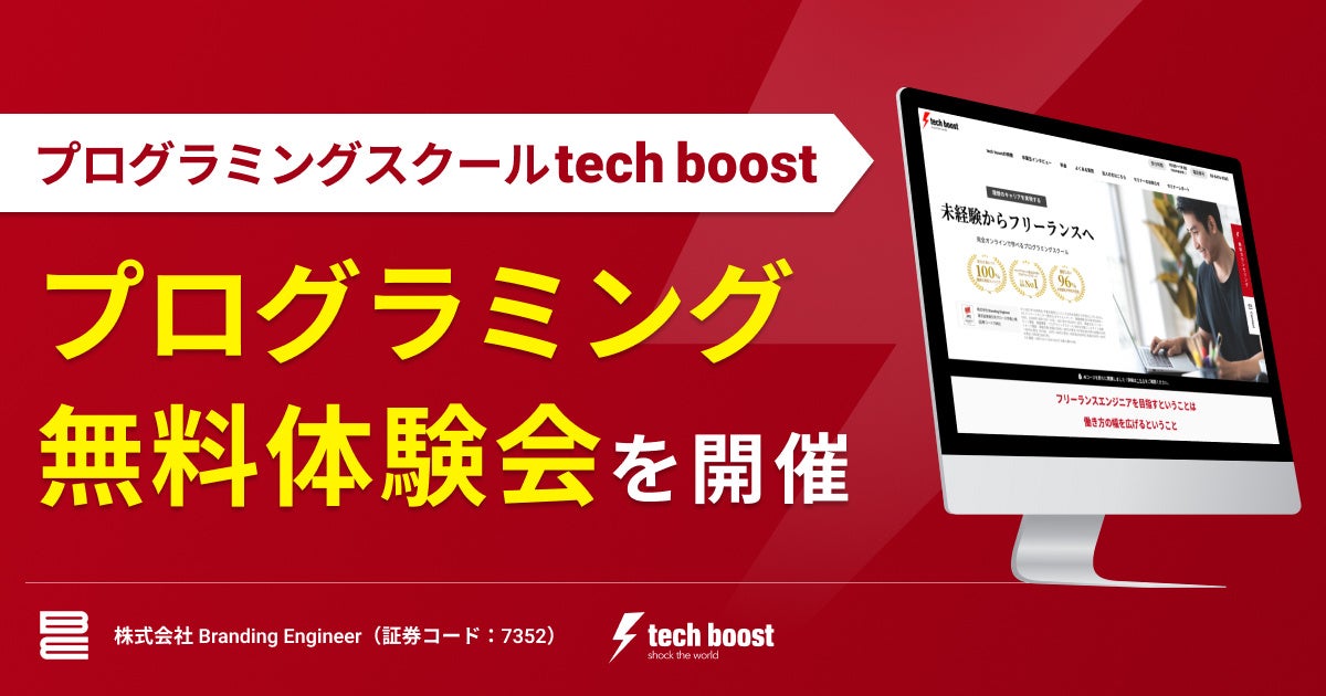 tech boostは、未経験からフリーランスエンジニアへの挑戦を支援するプログラミングスクールです。