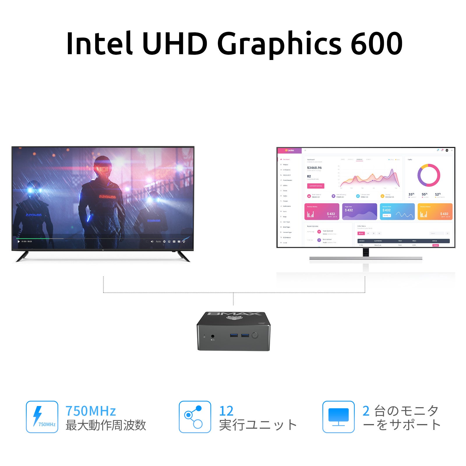 B2 ProはIntel UHD Graphics 600 GPUを搭載し、超リアルな4K UHDビジュアルに対応しています。また、HDMI*2接続により、最大2台のモニターでマルチディスプレイを構築することができます。2.4+5G Wi-Fi、1000M LANに対応し、ネットワークの高速化とパフォーマンスを保証します。