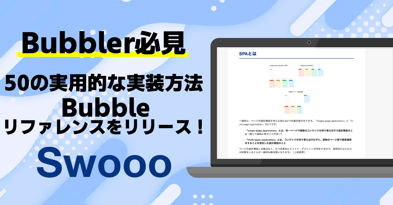 そこで、システム開発サービス「Swooo」は自社での経験をもとに、Bubbleの実装方法を画像付きで解説した「Bubbleリファレンス」を制作しました。