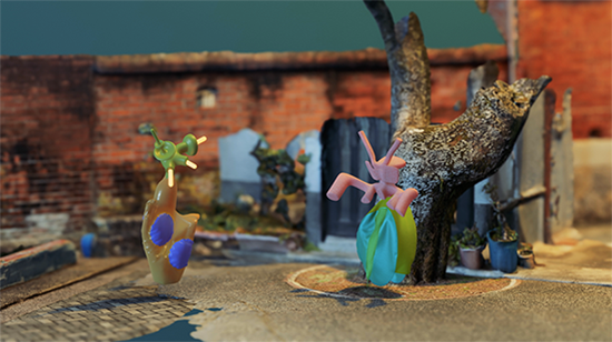 《ハンドメイドムーブメント》は、1話ごとに2体の不思議なパペットが対話する様子を描いた、3DCGアニメーションのシリーズです。各話の制作は、時里が自宅の周辺や訪れた場所を3Dスキャンするところから始まりますが、その後の制作過程には、時里以外にもAI(画像からの物体検出、また単語群からのセリフの生成)や人間の声優(声の演技)など、さまざまな「他者」が介在し、リレーのように創造行為が連鎖します。各話には明確なつながりや起承転結はありませんが、共通して登場する言葉や鑑賞者自身の経験からの連想を通して、鑑賞者自身が固有のつながりや意味を見出していくことになります。展覧会会期中に、オンライン・アーティスト・イン・レジデンス プログラムとして、シーズン2の制作を予定しています。