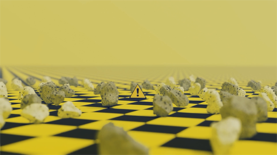 《The Spumoni》は、3DCGの映像作品シリーズ「Sp-s」の最新作です。このシリーズは、伊阪の住む親しみのある時空間と、どこか遠い時空間との関わりをめぐるフィールドワークをもとに映像が制作されます。フィールドワークで得られた事実に、伊阪による仮説が織り込まれ、異なる複数の事象や時空が独自の話法によってつなげられていきます。この作品においては、2021年から2022年にかけて太平洋で発生した大きな火山噴火が制作のきっかけとなっており、火山灰や軽石、年縞*、そして仙薬などがモチーフとして取り上げられます。また、伊阪が作品制作と並行して進めているエッセイ・フィルムと呼ばれる映像作品形式に関するリサーチ(「Excitation of Narratives」。メンバー:玄宇民、竹内均、伊阪柊)も、本作の制作に活かされています。