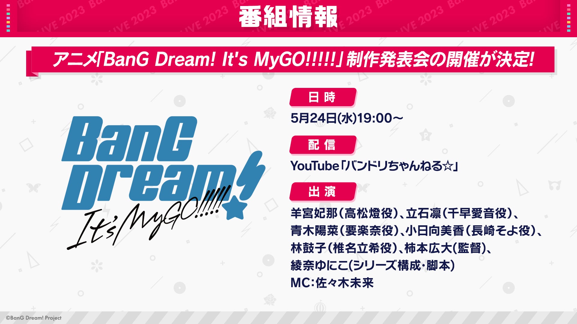 - アニメ「BanG Dream! It’s MyGO!!!!!」制作発表会を本日5月24日(水)19:00より開催!