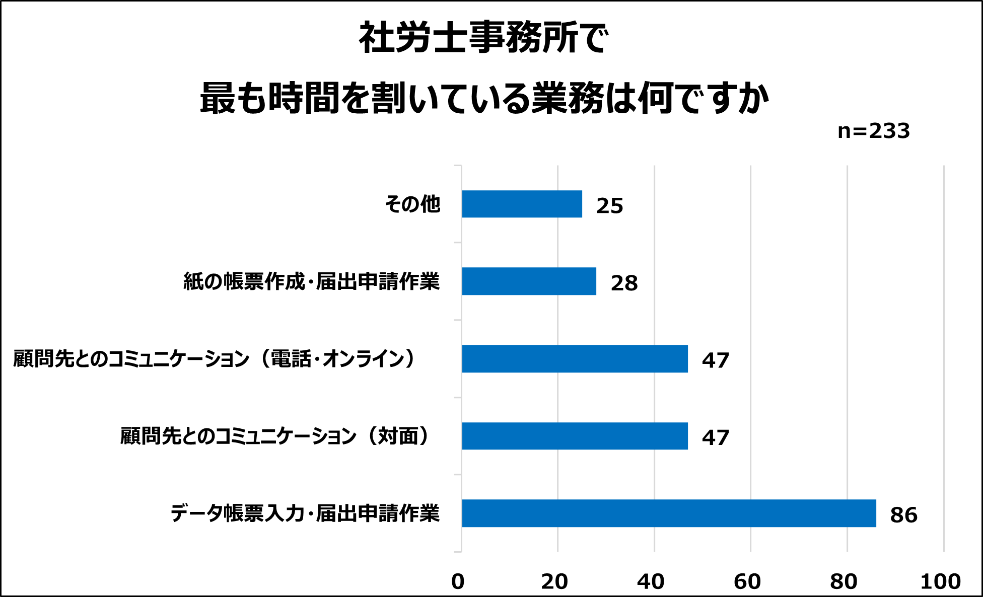 ■社労士事務所で最も時間を割いている業務は『データ帳票入力・届出申請作業』