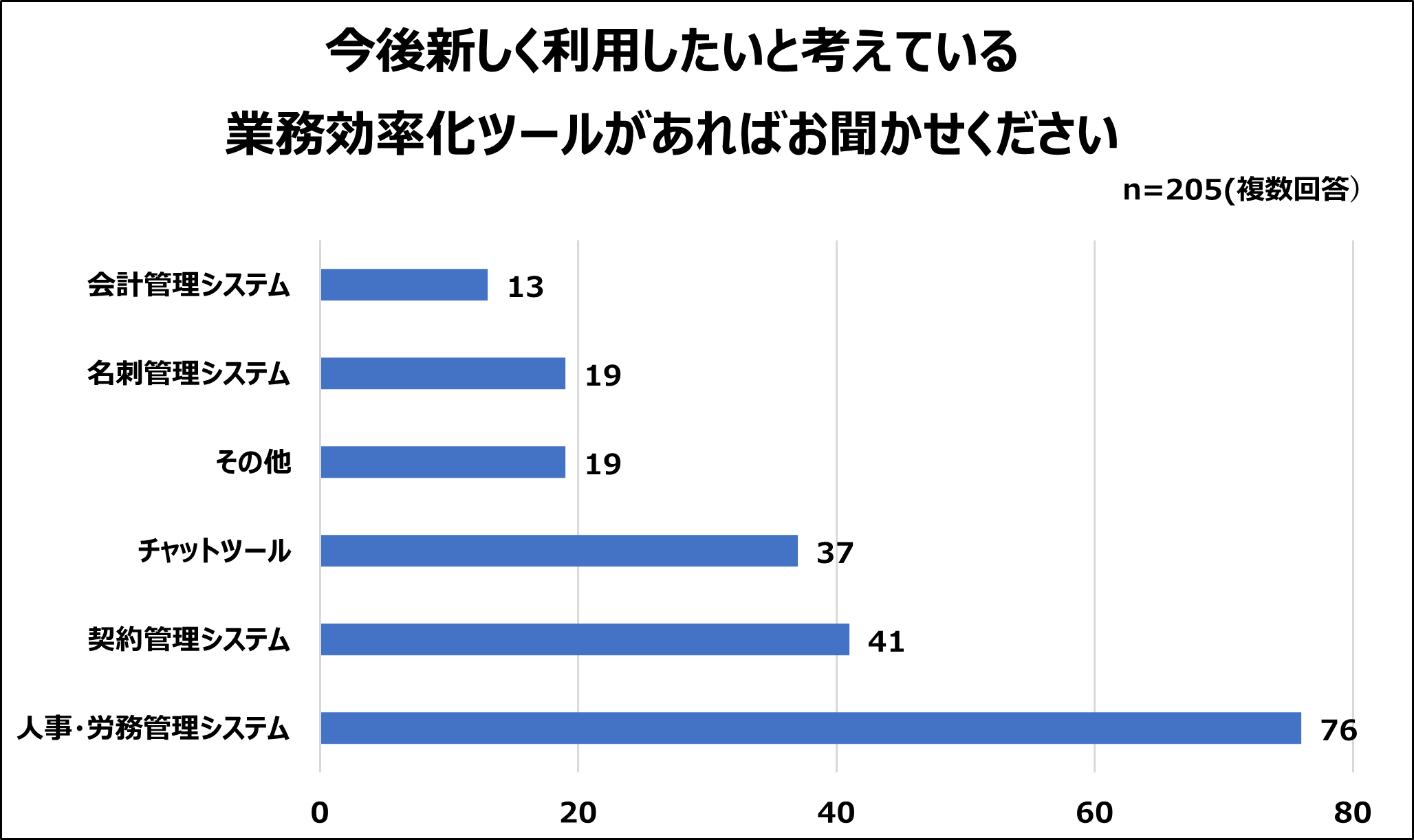 ■今後新しく利用してみたい業務効率化ツールは『人事・労務管理システム』との回答が最多