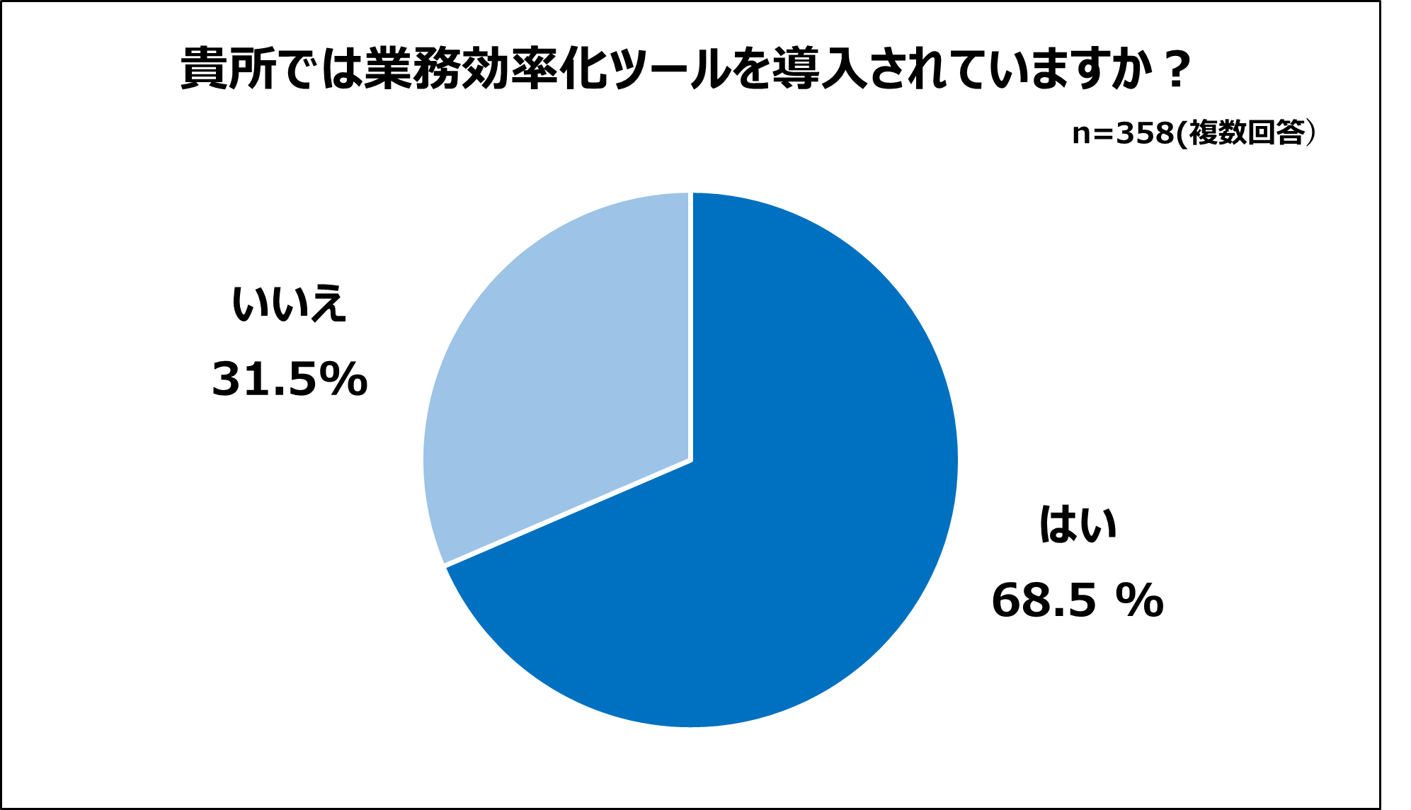 続いて、「貴所では業務効率化ツールを導入されていますか?」という質問をしたところ、『導入している(はい)』(68.5%)という回答が全体の約7割を占めました。2021年に当社が実施した同様の調査では業務効率化ツールを導入していると回答した人は24.5%で、この2年間で業務効率に対する意識が大きく変化していることがわかりました。