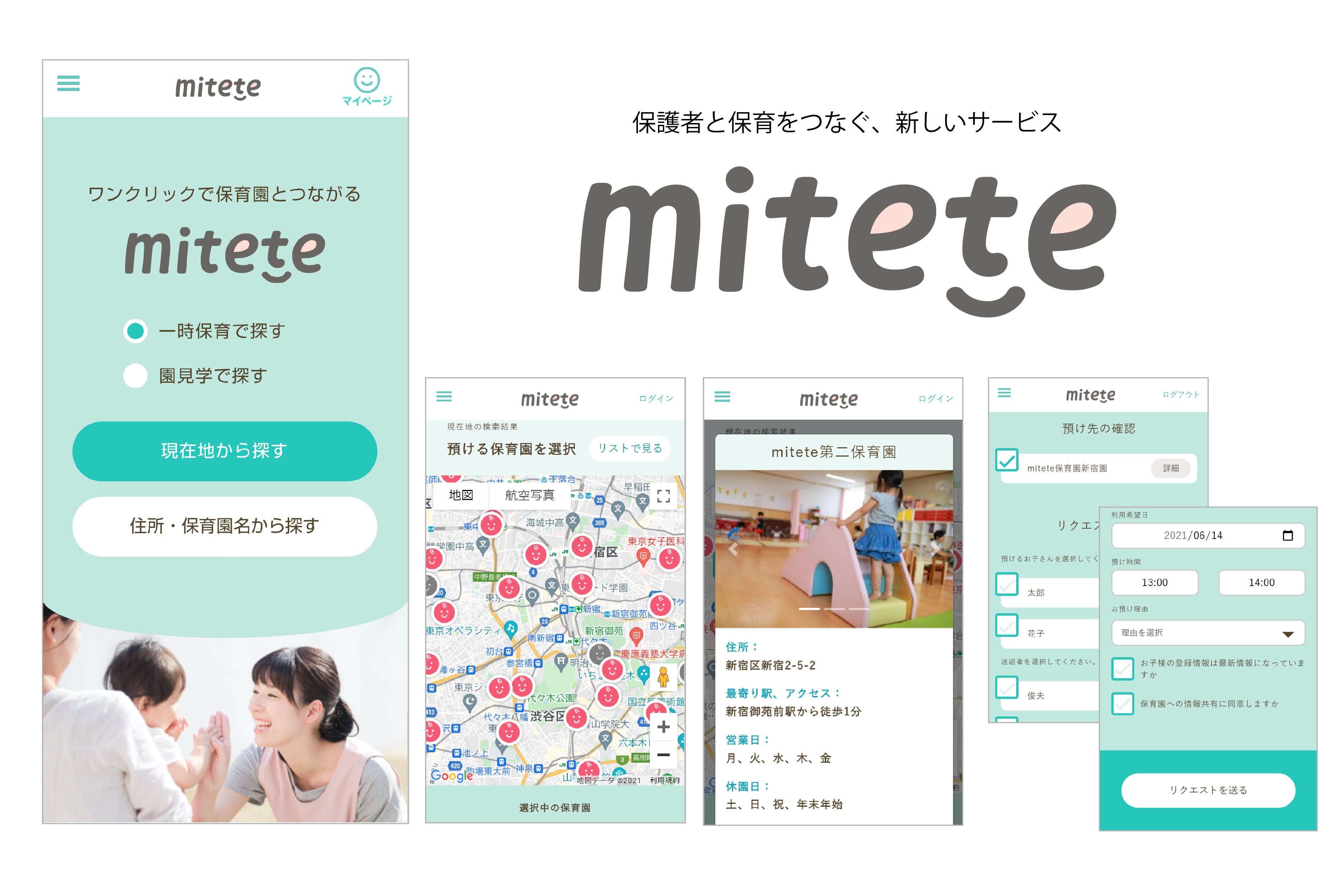 miteteは、ワンクリックで保育園と保護者が繋がる、日本初のサービスです。