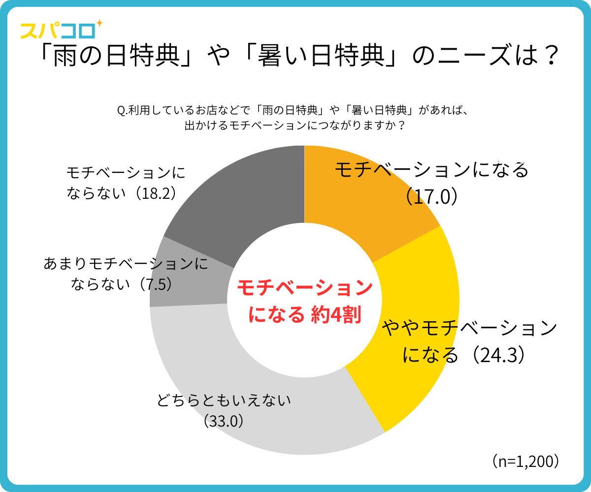 「雨の日特典」「暑い日特典」がもしあったとしたら約4割が「モチベーションに繋がる」と回答。
